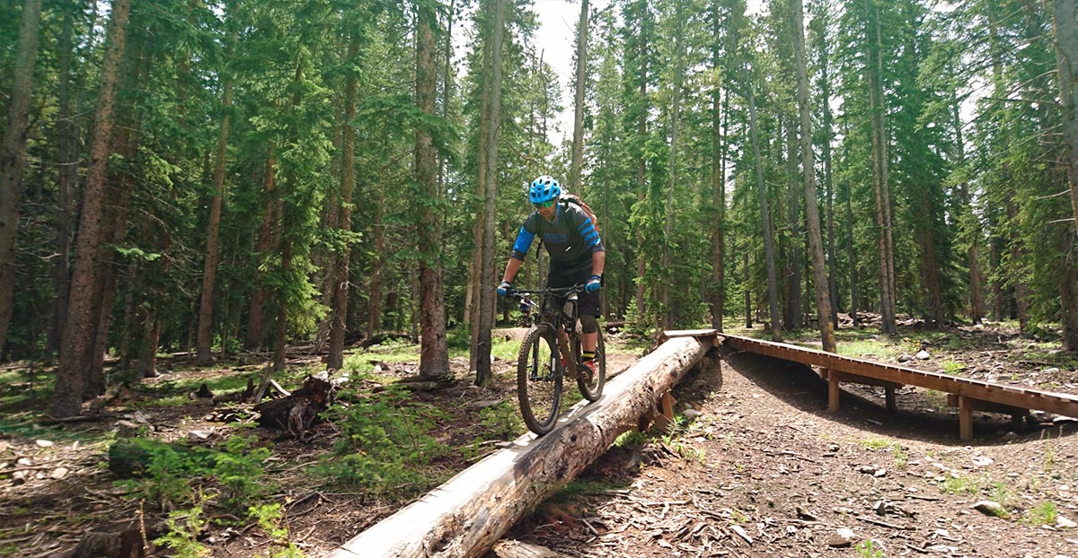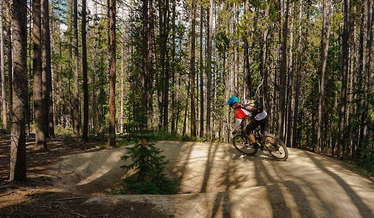 Flume Trail klingt nach Wattebausch und irgendwas flauschiges hat der kleine Trailloop auch. Wie aus dem Mountainbike Bilderbuch schlängelt der Trail nach wenigen Höhenmetern durch den Wald, vorbei an Blockhaus Villen.