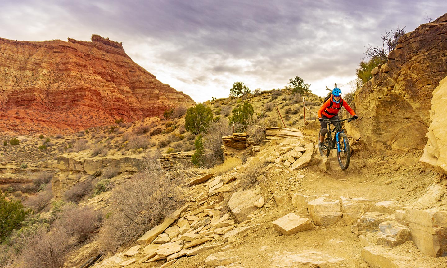 Vorab gesagt, bis zum nördlichen Virgin River Canyon ist der Trail flach, fährt sich wie ein natürlicher Pumptrack, den man immer wieder mit Pedalkraft beschleunigen muss.