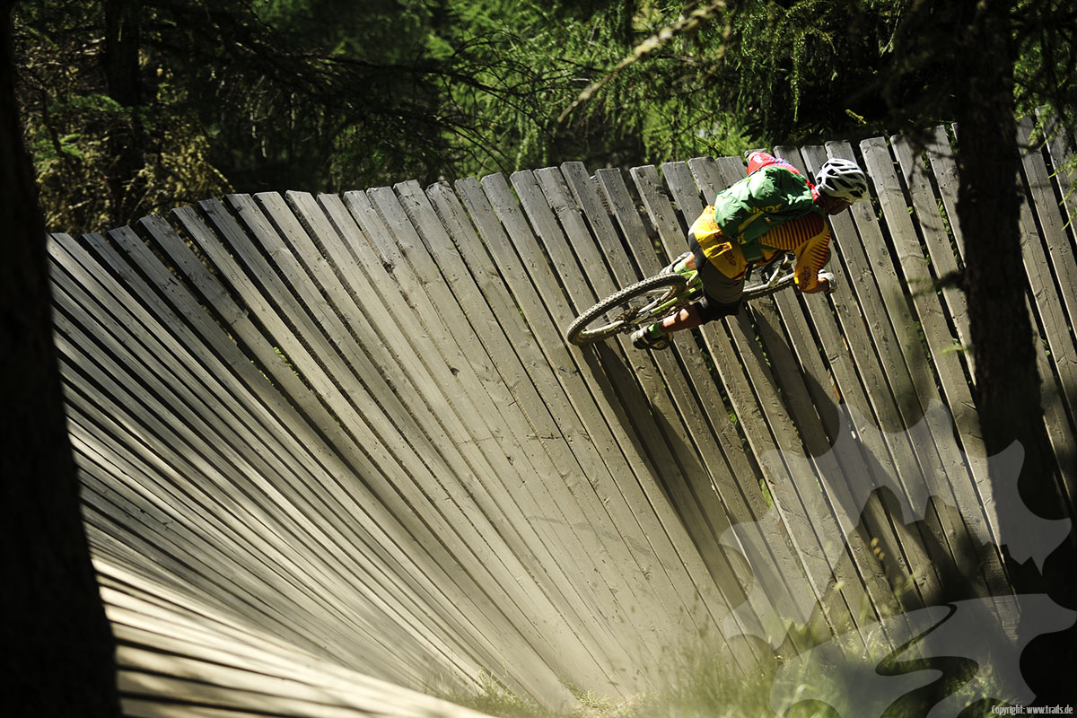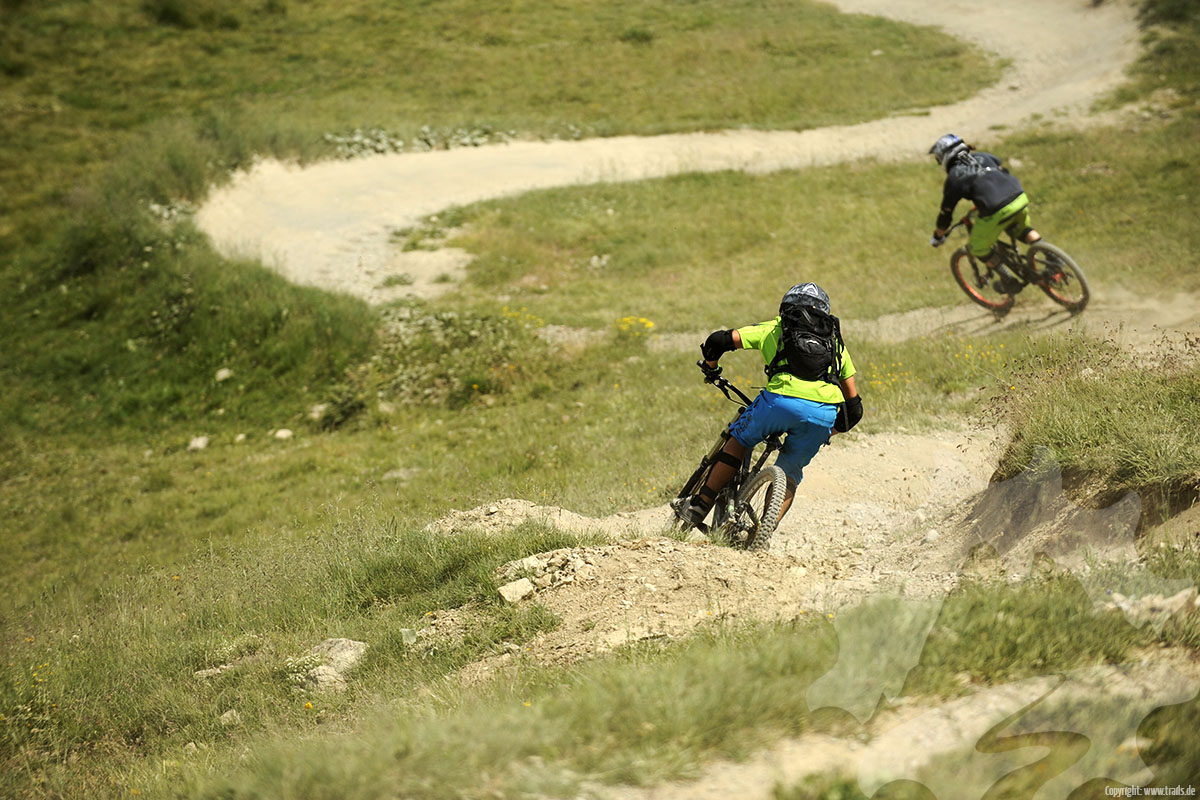 Die Streckenpflege ist insgesamt gut. Allerdings bleiben bei der herrschenden Besucherfrequenz Bremsrubbel vor den Anliegern nicht aus. Es lohnt sich daher das Fahrwerk etwas softer abzustimmen - mit einer straffen Gabel wird man wenig Spaß haben.