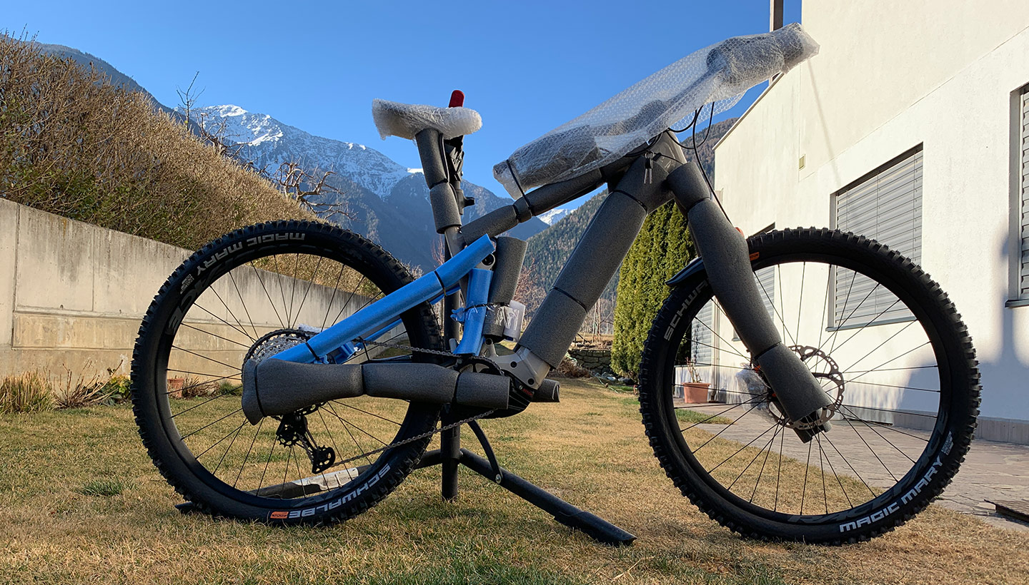 Bikecomponents liefert die beiden Bikes schnell und zuverlässig. Zwei Fullsize Kartone wurden Tage später hier ins Vinschgau angeliefert. Akku laden, Lenker drehen, Pedale montieren und Gabel Setup. So schnell waren wir noch nie mit dem Unboxing fertig.