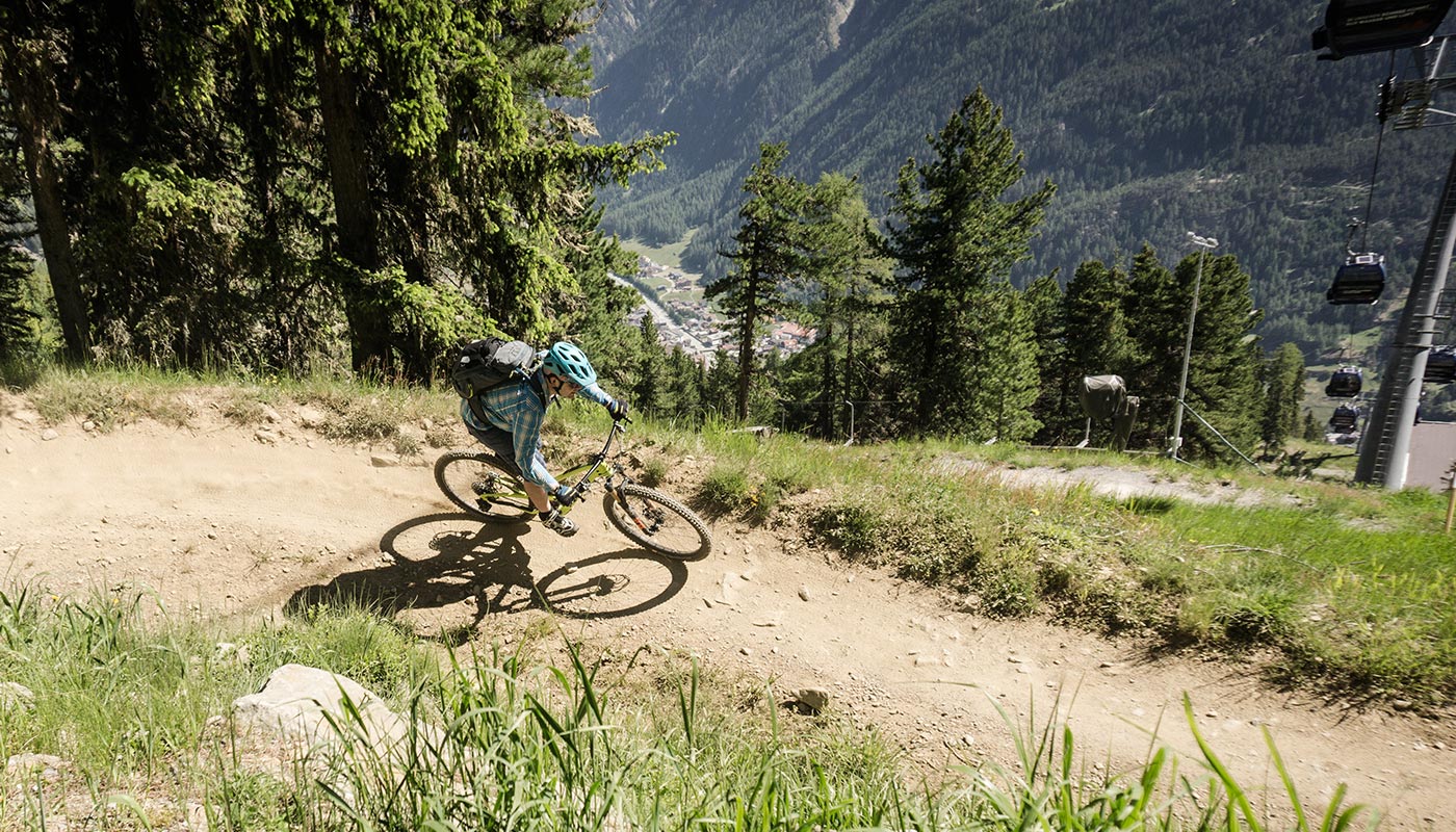 An der Bergstation rechts, dann durch den steinernen Torbogen und los geht das Vergnügen. Perfekte Kurvenradien, Wellen, kleine Jumps, eine hölzerne Schnecke, ein Wallride und viele kleine Sprungfeatures bringen Anfänger wie Profis in Flow.