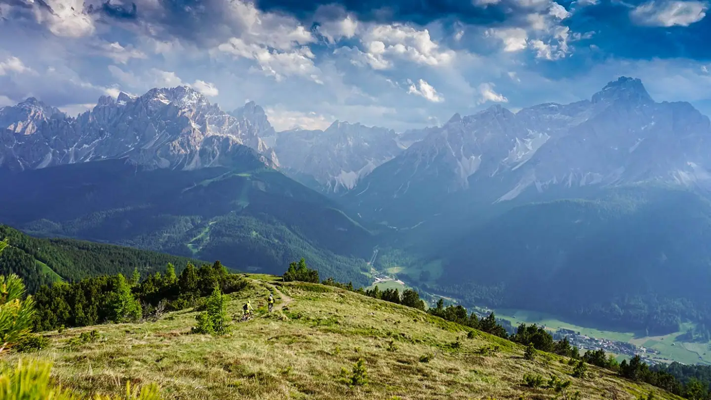 Dolomiten, Weltnaturerbe, Land der bleichen Berge. Die Dolomiten faszinieren und in jedem Tag gibt es einmalige Mountainbike Touren. Auf höchsten Niveau biked es sich im Sextner Himmel rund um die Drei Zinnen. Lifte helfen bei den Uphills und die Trails zirkeln am Grad entlang. Einen feinen Bikepark Tag verbringt ihr am Besten am Kronplatz im Pustertal.
