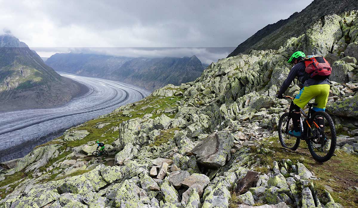 Das Sahnestück der Abfahrt folgt von der Hochfluh Bergstation bis zum Dorf Riederalp. Talwärts bis Bitsch folgen wir alten Saumpfaden und trockenen Trails.